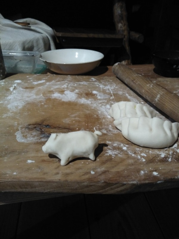 私もやろ!以前余った餃子の皮で作った豚