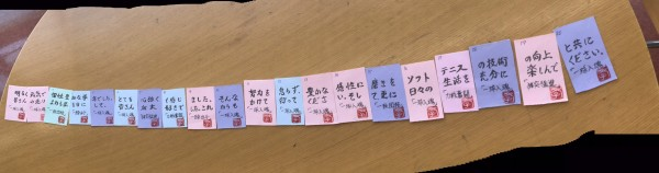 これは私の学年20人が部活を引退する時にコーチの先生がくれたものです。20枚の紙に分かれてて全部揃えると文章になってます