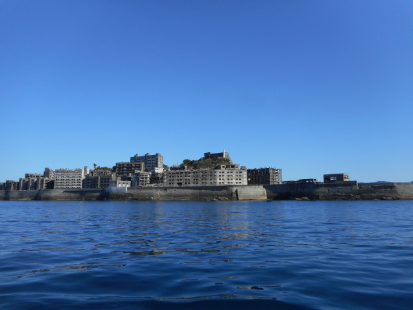 修学旅行のときの軍艦島です。 ご覧の通り雲ひとつない晴天でした〜 こんなに天気がいいのは珍しいみたいで、一緒に行った旅行会社の方は過去3回とも行けなかったらしく、私たちと行ったときすごい感動してました。 ちなみに上陸もしましたよ!