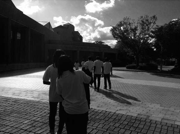 私がトランスジェンダーだってことを知っている数少ない知り合いで、とても大事な友達と一緒に撮りました。この時は西日がむっちゃきれいで、大好きな二人と一緒に撮ったらさぞかし綺麗だろうなって思って、LINEしたけど全然反応なくて、けど二人とも宿題やってるからじゃましたらいけんしな…、とは思ったけど、それでも諦めたくなくて大学の中あっちゃこっちゃ探し回ってたら奇跡的に二人を見つけられました。大学の中の夕陽がめっちゃきれいなところに二人を連れていって、一緒に写真を撮りました。私が一方的に連れてきたからどうなのかな…、ウザくなかったかなとか思ったけど、「嬉しかった」って言ってくれて嬉しかったし、ほんとに諦めなくてよかったと思ったし、何かに諦めそうになったら私はこの写真をいつも見つめて自分に喝を入れる、そんな写真です。