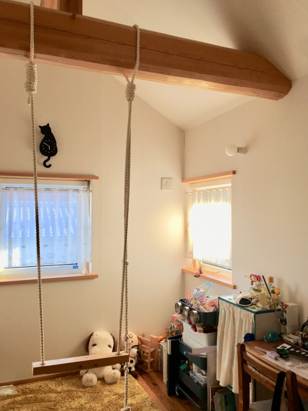 リフォームじゃないんですけど部屋をアレンジはしました!ブランコをつけました!小学生の時にですよ、、!!!見学に行ったお家にブランコがあってお父さんにつけてもらいました!(自分でつけると不安なんで、、) 小学生のときはよく乗ってました!友達が遊びにきてもずっと乗ってました、、!今はあんまり乗ってないなぁ、、 (写真すこし明るくしてます。色がなんか違うけど本当の明るさこれくらいですから!)